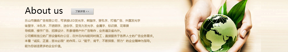 樂山市騰森廣告有限公司,創(chuàng)立于1999年,歷經(jīng)多年砥礪奮進,已發(fā)展成為一家多元業(yè)務(wù)于一體的綜合性專業(yè)廣告公司,多年來,憑借卓越的創(chuàng)意團隊、精湛的技術(shù)工藝以及對市場趨勢的敏銳洞察力,我們在廣告領(lǐng)域迅速崛起,贏得了眾多客戶的信賴與贊譽。