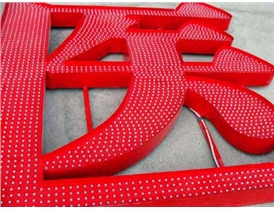 外露發(fā)光字即鐵皮字,不銹鋼字,鋁字,鈦金字表面沖孔裝上LED單顆防水燈串。外露發(fā)光字的制作材料常用的有:亞克力板,鍍鋅板,不銹鋼,鈦金板。